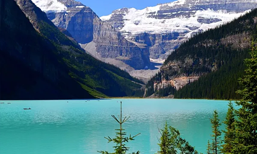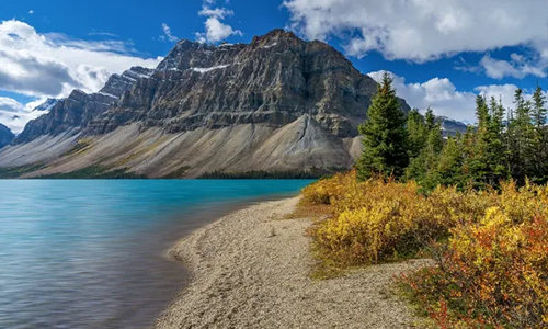 Famed for its “Wolf’s Head” shape, Peyto Lake offers a stunning view from the Bow Summit. The vibrant glacier-fed waters are even more striking from above, making it an essential stop on any road trip.